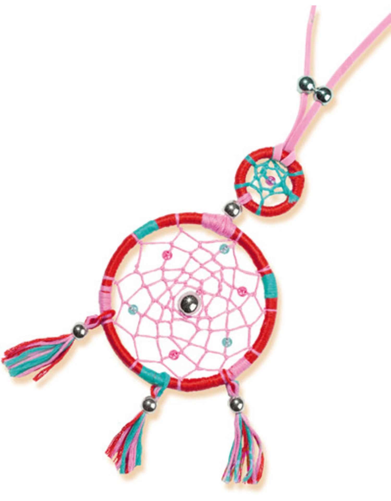 Dromenvangers zijn niet alleen leuk als roomdeco, maar ook als sieraden! Met deze set van SES maak je je eigen dromenvanger armbanden en ketting. Gebruik het gekleurde draad, de ringen, kralen en veter om allerlei mooie sieranden te maken. Met duidelijke handleiding die je de knooptechnieken leert.