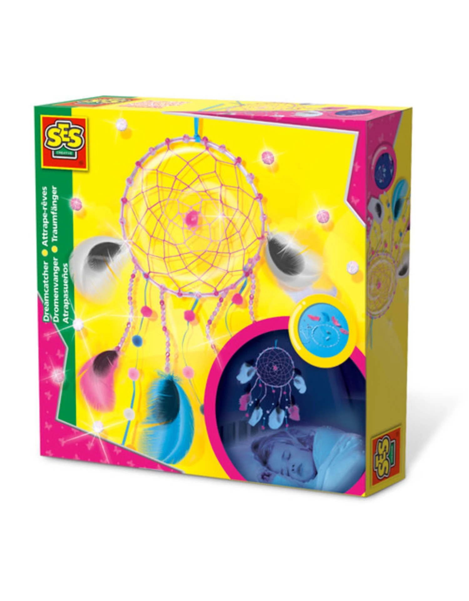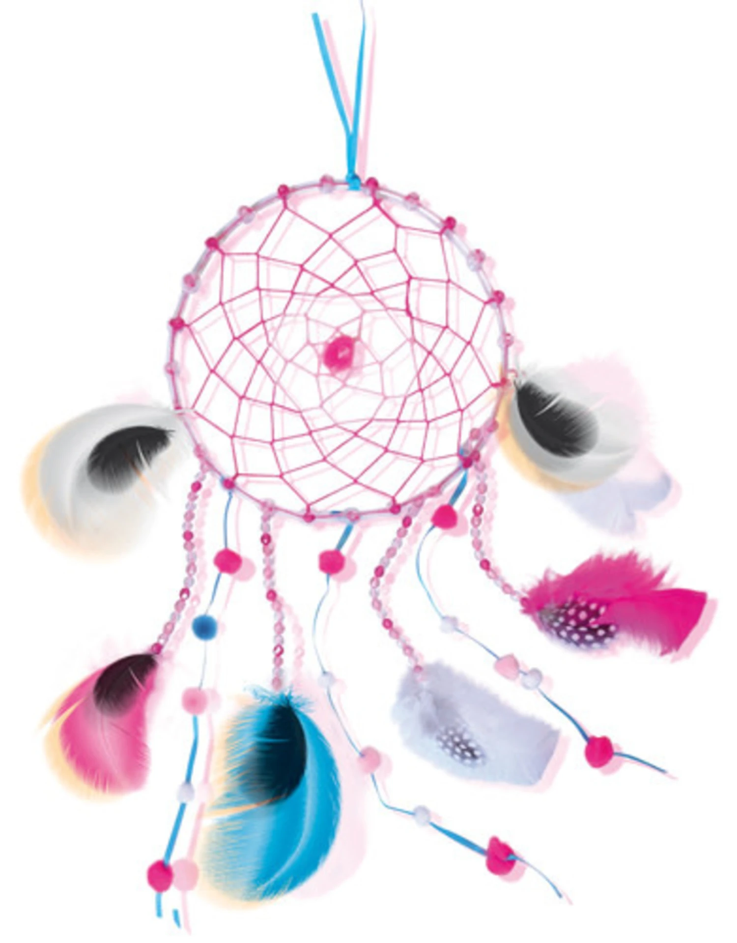 Eenvoudig te maken doordat in de kunststofring de gaten al de juiste afstand tussen elkaar hebben, wat het knopen vereenvoudigd. Met de gekleurde veren, kraaltjes, lintjes en pompons maak je je dromenvanger nog unieker.