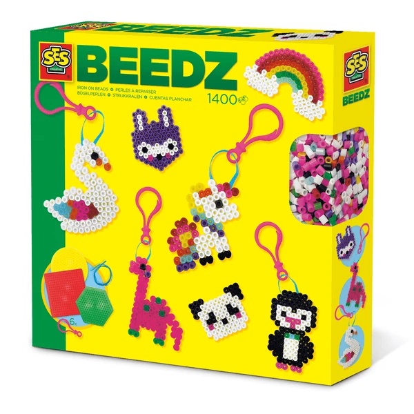 - Inhoud: Strijkkralen legbord vierkant; Strijkkralen legbord cirkel; Strijkkralen legbord zeshoek; Kralen mix, 1400 stuks; 6 sleutelhangers; Lint; Strijkvel; Handleiding