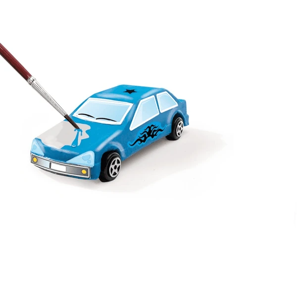 Giet het gips in de mal, voeg de wielen toe en laat alles drogen. Dan kunt u uw auto’s in uw favoriete kleuren schilderen. Ze zien er nog cooler uit met stickers!